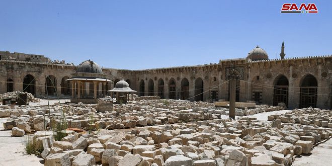 كاميرا سانا رصدت ما تم انجازه من الأعمال الجارية لإعادة رونق الجامع الذي يشكل أحد أركان الذاكرة المعمارية لمدينة حلب وعنصرا جماليا نادرا يتوسط المدينة القديمة التي تتربع على تاريخ طويل يمتد لأكثر من 5 آلاف عام.
