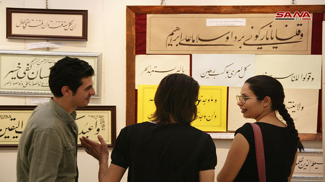 اقيم في المركز الثقافي العربي بأبو رمانة مساء اليوم معرض للخط العربي ضم لوحات قديمة وحديثة رافقها شرح من الخطاط محمود رشيد حديد لكيفية كتابتها.