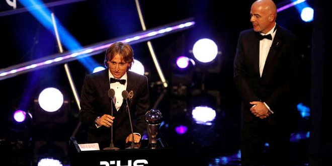 نال اللاعب الكرواتي لوكا مودريتش جائزة الاتحاد الدولي لكرة القدم الفيفا لأفضل لاعب في العالم لعام 2018 خلال حفل أقيم اليوم في لندن.