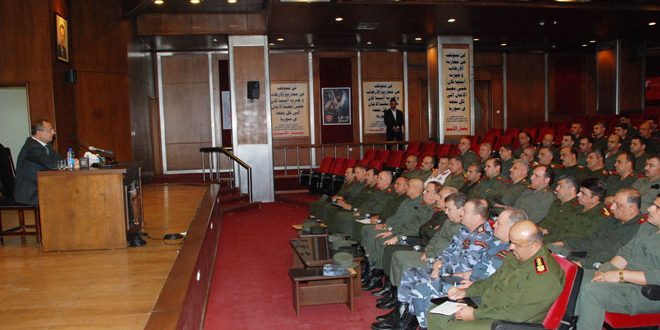 وخلال لقائه اليوم الضباط خريجي دورة القيادات الوسطى في مقر وزارة الداخلية أشار الوزير الشعار إلى أنه من أوليات عمل قوى الأمن الداخلي الحفاظ على أمن المواطنين وحماية الممتلكات العامة والخاصة وتعزيز الطمأنينة في المجتمع لافتا إلى الانتصارات المتتالية التي تحققها الدولة السورية عسكريا وسياسيا على الإرهاب وداعميه بفضل تضحيات جيشنا الباسل وقوانا الأمنية.