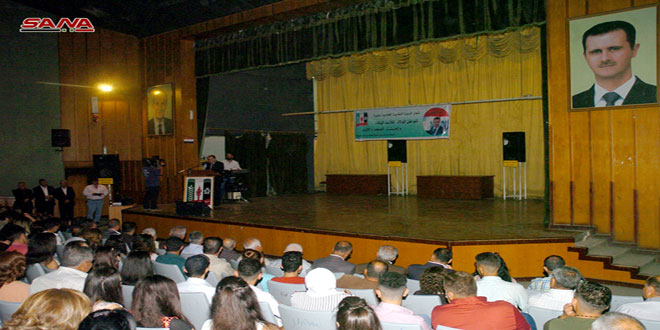 كرم المكتب الفرعي لنقابة المعلمين بالسويداء اليوم 64 طالبا من أبناء المعلمين المتفوقين دراسيا في جميع الشهادات والأوائل على مستوى سورية في شهادتي التعليم الأساسي والمهني وإدارات المدارس المتفوقة.