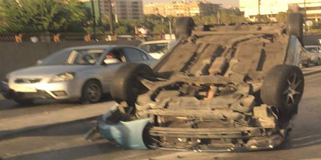 انقلبت بعد ظهر اليوم سيارة ضمن نفق ساحة الأمويين ما أدى لإصابة سائقها بجروح متوسطة وإلحاق أضرار بالسيارة.