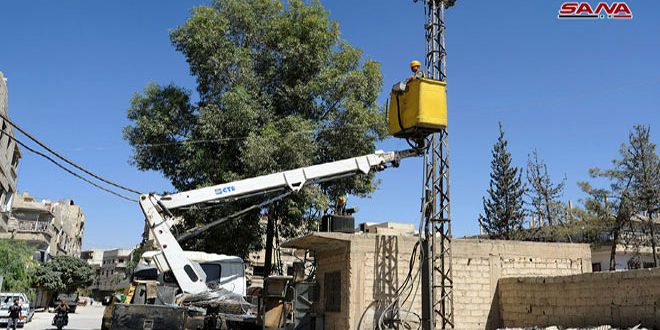 ورشات الصيانة تعمل على إعادة التيار الكهربائي إلى عربين