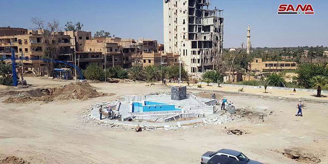 شارفت الورشات الخدمية والفنية على إنجاز أعمالها في إصلاح وترميم البانوراما في المدخل الجنوبي لمدينة دير الزور وعدد من الساحات الرئيسية في المدينة في إطار الخطة الحكومية المتكاملة لإصلاح الأضرار الناجمة عن جرائم الإرهابيين خلال السنوات السابقة.