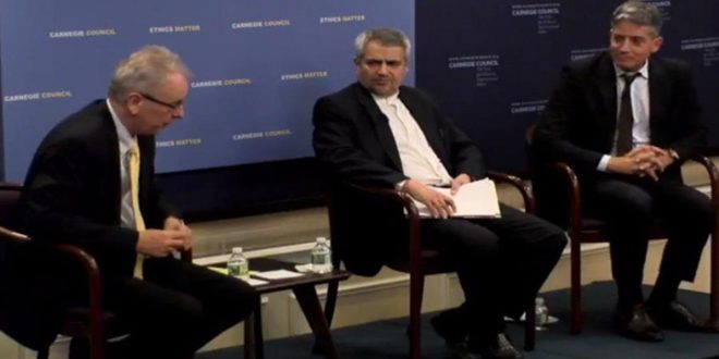 وخلال كلمة له في اجتماع أقيم في مركز أبحاث كارنيغي في نيويورك تحت عنوان “تداعيات التهديد على العلاقات الدولية والرؤية الأخلاقية تجاهها” انتقد علي خوشرو السلوك الحالي للحكومة الأميركية المتمثل بانسحابها من الاتفاق النووي وفرضها حظراً على إيران رغم التزام طهران بجميع تعهداتها بموجب الاتفاق الدولي حول ملفها النووي وهو أمر اعترفت به الوكالة الدولية للطاقة الذرية مراراً.