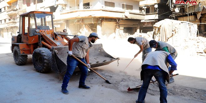 ووفق المهندس الخالد كان المخيم يضم ما لا يقل عن 460عيادة طبيب إضافة إلى قرابة400 مكتب هندسي ومحاماة عدا عن المشافي والمدارس كاشفاً أن المهلة المحددة للمرحلة الأولى من العمل حددت بخمسين يوماً وقد انتهى العمل بالشارع الرئيسي الثاني في المخيم شارع فلسطين- وشارع لوبية الشهير وبدأ العمل بالشوارع الفرعية .