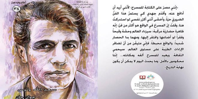 صدر عن الهيئة العامة السورية للكتاب ضمن سلسلة إعلام ومبدعون كتاب شهري بعنوان سعد الله ونوس للكاتب جوان جان اصطحب فيها القارئ إلى عوالم الأديب المسرحي الكبير وبداياته.