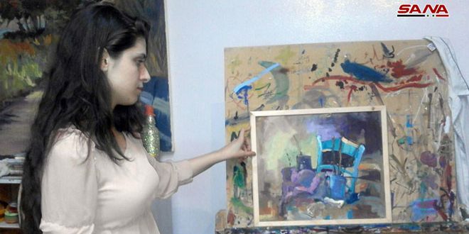 ساعات طويلة تقضيها لجين ضمن مرسمها في مدينة شهبا بالسويداء لإنجاز العديد من الأعمال التي تحمل اختزالا للشكل وأفكارا بسيطة مشبعة باللون والضوء مع فهم للخط واعتماد على ضربات الفرشاة القوية.
