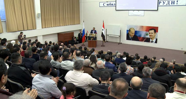 جدد أبناء الجالية العربية السورية في روسيا الإتحادية وقوفهم إلى جانب وطنهم الأم سورية في مواجهة ما يتعرض له من حرب ارهابية بدعم من الغرب وعملائه الإقليميين.