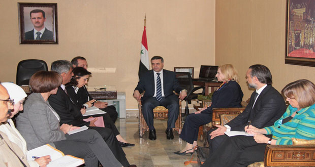 بحث وزير التربية الدكتور هزوان الوز مع نائب المفوض العام لوكالة الأمم المتحدة لإغاثة وتشغيل اللاجئين الفلسطينيين الأونروا مارغوت أليس والقائم بأعمال شؤون الوكالة في سورية ديان بوتبارا تعزيز مجالات التعاون والتنسيق بين الجانبين.