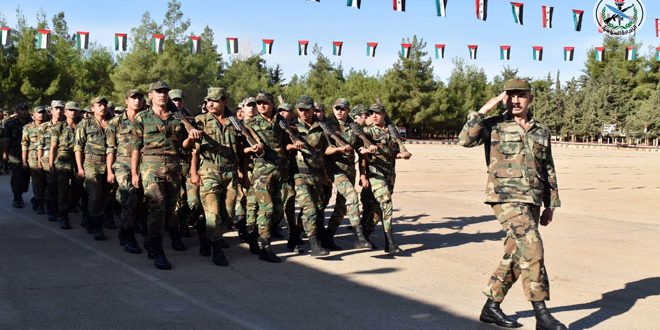 وفي ختام كلماتهم عاهد القادة شعبنا والسيد الرئيس الفريق بشار الأسد على أن تواصل قواتنا المسلحة مهامها الوطنية في ملاحقة المجموعات الإرهابية حتى القضاء عليها وإعادة الأمن والاستقرار إلى ربوع الوطن.