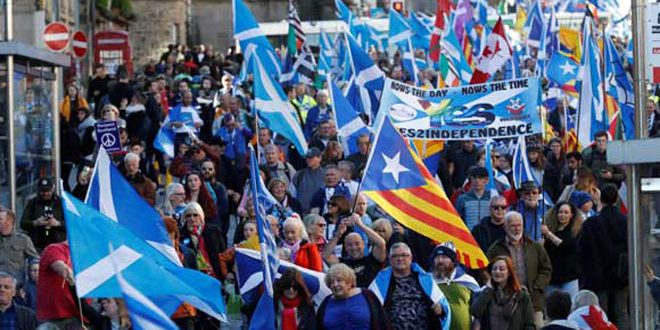 تظاهر عشرات الآلاف اليوم في إدنبره للمطالبة باستقلال إسكتلندا عن المملكة المتحدة.