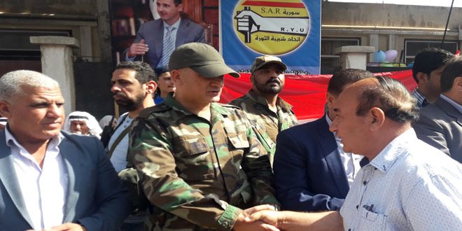 ونوهت الكلمات التي ألقيت أثناء الحفل بمعاني ودلالات حرب تشرين التحريرية التي استمد منها الشعب السوري قيم التضحية والفداء والبطولة والتمسك بالحقوق والأرض وعدم التفريط بذرة تراب واحدة فكانت طريقا أكمله أبطال الجيش العربي السوري اليوم في مقارعة الإرهاب التكفيري.