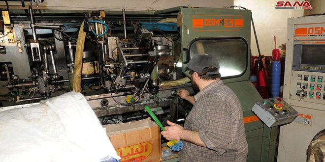 الصناعي عاكف رومية صاحب منشأة للتغليف والطباعة قال: إنه “يختص بتصميم مختلف انواع العلب الكرتونية لتغليف المنتجات الصناعية على مستوى سورية والوطن العربي” مؤكدا أن الواقع الصناعي بدأ بالتحسن وهناك مساع لإعادة فتح جميع الأسواق في الخارج.