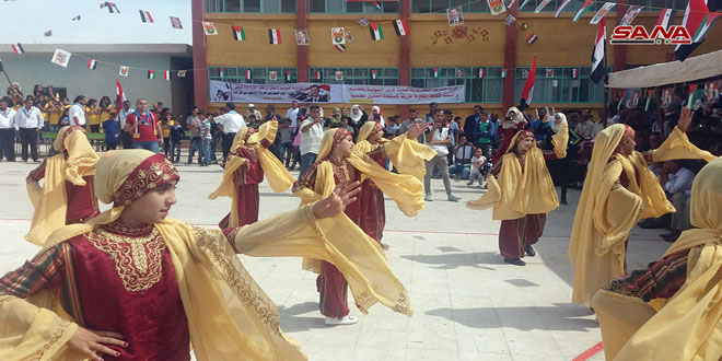 وتضمنت الفعالية عروضا فنية ولوحات لأطفال الطلائع تحاكي التراث والفلكلور الشعبي الجولاني.