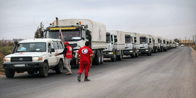 أوصلت فرق الهلال الأحمر العربي السوري بدرعا اليوم 5700 سلة غذائية ومثلها من الطحين إلى 6 بلدات بمنطقة حوض اليرموك في ريف درعا الغربي.