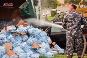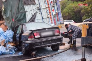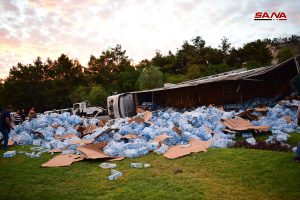 وذكر مصدر في فرع مرور دمشق لمندوبة سانا أن السيارة الشاحنة بطول 16 مترا كانت محملة بعبوات مياه للشرب تدهورت نتيجة فقدان السائق السيطرة عليها عند دوار المشفى نزلة قاسيون ما أدى إلى انقلابها وإصابة السائق وعدد من الاشخاص كانوا بداخلها اصابات متوسطة تم إسعافهم إلى مشفى المواساة.