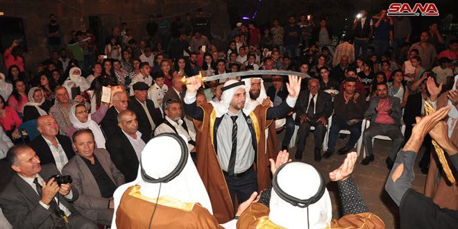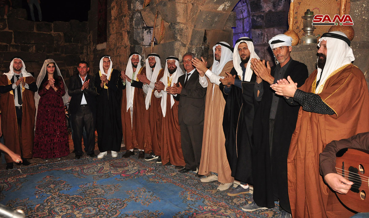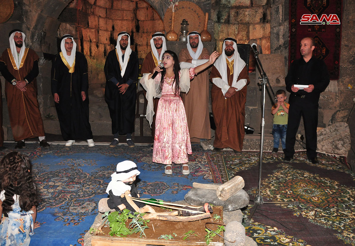 أحيت فرقة فرع جمعية العاديات بالسويداء سهرة تراثية في ساحة مجمع المعابد والكنائس الأثري ببلدة قنوات مساء اليوم ضمن فعاليات مهرجان شهبا الحادي عشر للتراث والفنون.