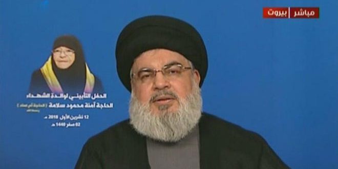 وبشأن ادعاءات رئيس وزراء حكومة الاحتلال الإسرائيلي بنيامين نتنياهو عن وجود مستودعات صواريخ بجوار مطار بيروت أكد السيد نصر الله أنها “مسرحية بهدف الحرب النفسية” لافتا إلى أن كل ما يتصل بسياسة المقاومة هو الغموض البناء والصمت الهادف من موقع المعركة.
