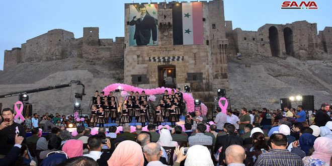 ضمن فعاليات الحملة الوطنية للكشف المبكر عن سرطان الثدي التي تأتي بالتزامن مع الشهر العالمي للتوعية بسرطان الثدي أقيم مساء أمس حفل توعوي تخلله إلقاء كلمات تعريفية عن المرض والحث على ضرورة الفحص الدوري وذلك أمام قلعة حلب.