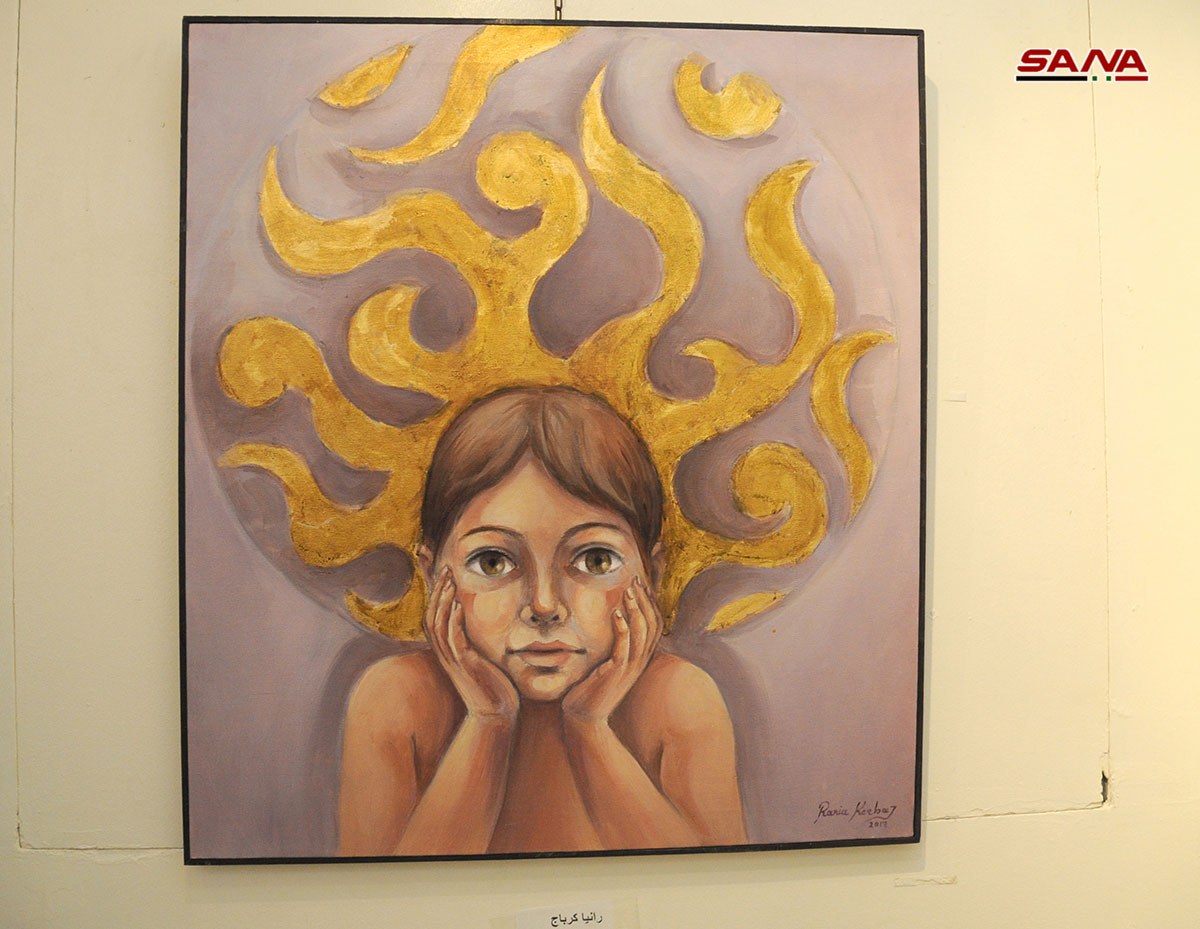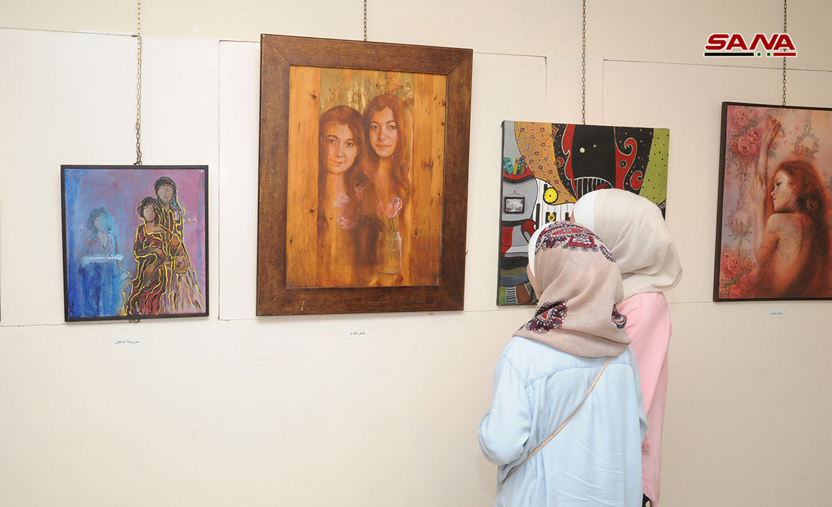 جمعة النزهان عبر عن سعادته بتكريم الفنان الحمصي عبر لوحة أسماها “نامي إلى جهة الياسمين” تعبر عن المرأة السورية بحالة رومنسية معينة وأضاف عليها جزءا من قصيدة للشاعر نزار قباني التي تحمل العنوان نفسه أما الفنانة رويدا عبد الحميد فشاركت بلوحة إكريليك على القماش موضوعها الانتظار والتأمل كتحية للفنان الراحل.