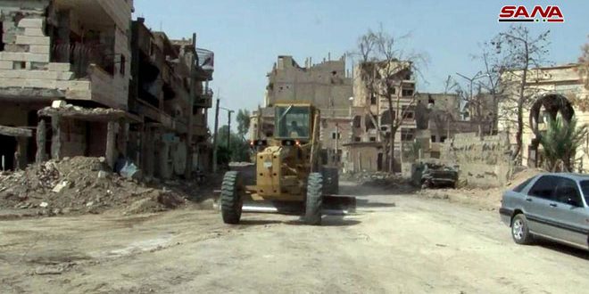 تواصلت أعمال الورشات الفنية في مدينة دير الزور لإعادة الحياة إلى إحيائها المحررة عبر إزالة الأنقاض وفتح الطرقات لإدخال المواد الأساسية إليها والبدء بإعمار وتأهيل البنى التحتية والمنازل المتضررة فيها نتيجة اعتداءات تنظيم “داعش” عليها بالمفخخات والقذائف الصاروخية قبل اندحاره عن المدينة.