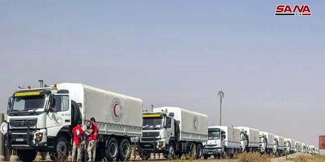 أوصل فرع الهلال الأحمر العربي السوري بدرعا اليوم قافلة مساعدات غذائية لتوزيعها على الأهالي في 10 بلدات بمنطقة اللجاة.