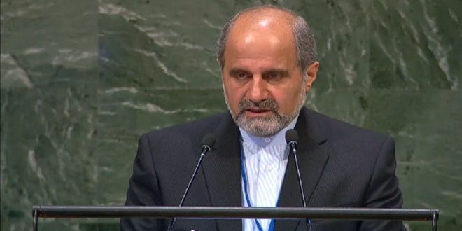 وأشار نائب مندوب إيران الدائم لدى الأمم المتحدة اسحاق آل حبيب خلال اجتماع لجنة نزع السلاح والأمن الدولي المنعقد في الجمعية العامة للأمم المتحدة في نيويورك إلى أن وقاحة الكيان الصهيوني بلغت حدا كبيرا حيث وقف رئيس وزرائه الى جانب منشآته النووية السرية مهددا بتدمير إيران باستخدام الاسلحة النووية داعيا مجلس الأمن الدولي إلى الاضطلاع بمسؤولياته والعمل على إزالة هذا التهديد النووي الذي يمثله هذا الكيان.