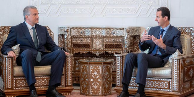 واستهل الرئيس الأسد اللقاء بتهنئة شعب القرم وقيادته على تحقيق إرادتهم بالعودة إلى حضن الوطن الأم روسيا الاتحادية وأكد أن هذه الزيارة تشكل بداية جيدة لبناء علاقات تعاون بين الجانبين في مختلف المجالات وخاصة أن البلدين يمتلكان موقعاً متميزاً على البحرين الأسود والمتوسط.