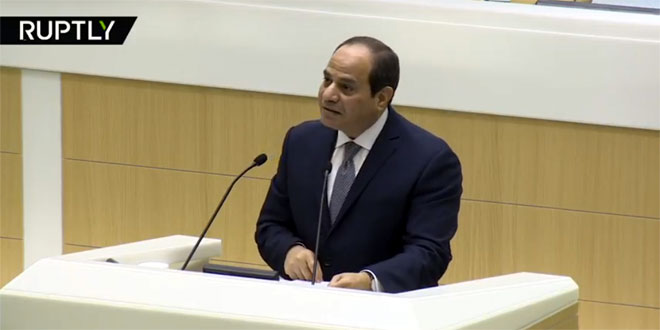 وأشار السيسي في كلمة أمام مجلس الاتحاد الروسي في موسكو اليوم إلى أهمية تحريك عملية التوصل إلى تسوية سياسية للأزمة في سورية “بشكل يحفظ وحدتها وسلامة مؤسساتها ويلبي طموحات أبنائها”.