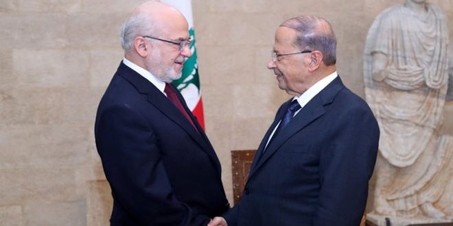 وذكرت الوكالة الوطنية اللبنانية للإعلام أن عون أعرب خلال لقائه اليوم في بيروت وزير الخارجية العراقي ابراهيم الجعفري عن تهانيه للعراق بتحرير أراضيه من الإرهاب وعودة الأمن والاستقرار إلى ربوعه.