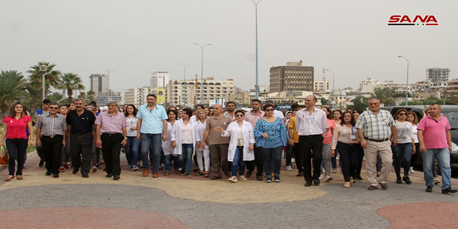 نظمت مديرية صحة طرطوس منطقة طرطوس الصحية مسيرا بعنوان “لأنك أقوى من السرطان” وذلك ضمن فعاليات الحملة الوطنية للكشف المبكر عن سرطان الثدي والتي تأتي بالتزامن مع الشهر العالمي للتوعية بهذا المرض.