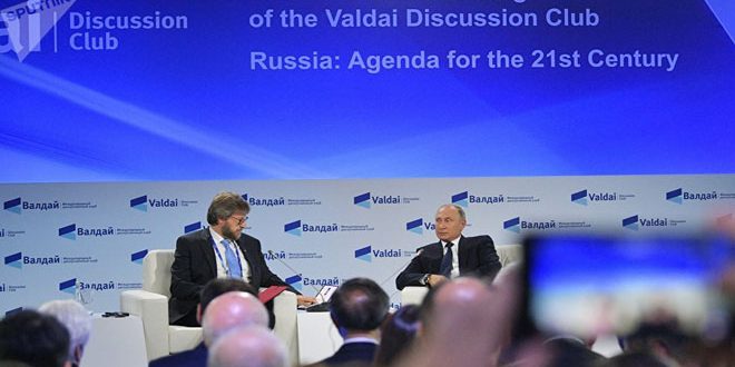 وأوضح بوتين في كلمة له خلال منتدى فالداي للحوار أمس أن مشاركة القوات الجوية الروسية في العمليات العسكرية في سورية هدفها القضاء على الارهاب العالمي الذي يهدد سورية والمنطقة وروسيا والعالم أجمع.