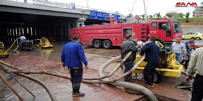 الورشات الفنية تواصل أعمال إزالة الطمي والمياه في عدد من الأنفاق في دمشق وريفها لفتح الطرقات