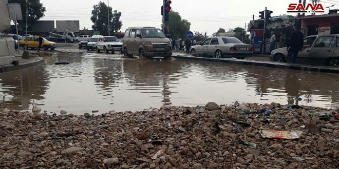 من آثار السيول الجارفة التي تعرضت لها بعض شوراع دمشق في ركن الدين جراء الأمطار الغزيرة أمس