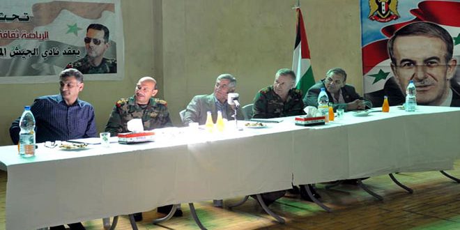 رئيس الاتحاد الرياضي العام اللواء موفق جمعة أوضح أن نادي الجيش ركيزة أساسية للرياضة السورية ويزخر بالأبطال على صعيد الألعاب الجماعية والفردية وهو رافد لمنتخباتنا الوطنية مشيرا إلى الإنجازات الكثيرة التي حققها النادي محليا وخارجيا.