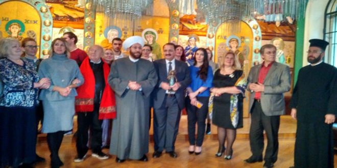 حضر الحفل سماحة المفتي العام للجمهورية الدكتور أحمد بدر الدين حسون وممثل كنيسة الروم الأرثوذكس الأب نقولا وقاص وممثلون عن منظمات “النساء الروسيات” و “بولص الرسول” و”الطفولة المتجددة” وشخصيات رسمية وشعبية من روسيا.