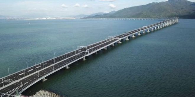 افتتحت الصين اليوم أطول جسر مائي في العالم يربط بين هونغ كونغ وماكاو والبر الصيني الرئيسي.