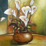 وتضمن المعرض أعمالا زيتية بأشكال مختلفة اهتمت بقضية الوجوه ولا سيما وجه المرأة التي غلبت عليها المدرسة الانطباعية حيث بينت الفنانة “المجيد” أنها حاكت في لوحاتها مواضيع عديدة كان أبرزها المرأة لافتة إلى إحدى اللوحات بكونها الأقرب إلى شخصيتها وتدعى “الأزهار الحزينة” والتي تجسد حزن المرأة مستخدمة الألوان الحارة كالأحمر وغيره المعبرة عن الحزن الشديد.