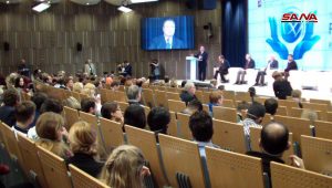 واستعرض سماحة المفتي العام للجمهورية الدكتور أحمد بدر الدين حسون في كلمة له دور بعض وسائل الإعلام العربية والغربية في الحرب على سورية داعيا إلى صنع عالم ينعم فيه الجميع بالسلام والابتعاد عن تشويه الرسالات السماوية.