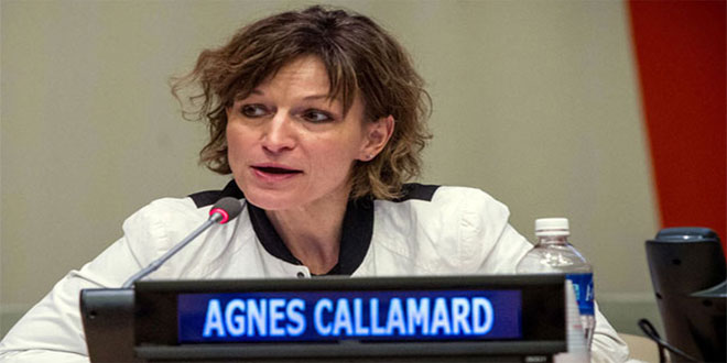ونقلت وكالة فرانس برس عن كالامارد قولها خلال مؤتمر صحفي بنيويورك أمس “حتى السعودية نفسها أقرت بأن الجريمة تمت عن سابق تصور وتصميم وبأن مسؤولين في المملكة ضالعون فيها “مضيفة” هل تصرف هؤلاء باسم الحكومة أم لا .. هو أمر لا يزال يتعين البحث فيه و توضيحه ولكن من وجهة نظر القانون الدولي لحقوق الإنسان فإن هذه كلها علامات على إعدام خارج نطاق القضاء”.