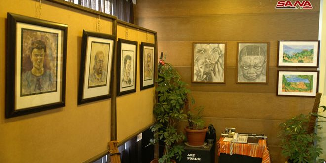 30 عملا فنيا قدمها 12 فنانا وفنانة أتوا من محافظات مختلفة لتجسيد رسالة محبة في معرض جماعي بالسويداء بصورة تعكس جمالية سورية ووحدتها وأصالتها.