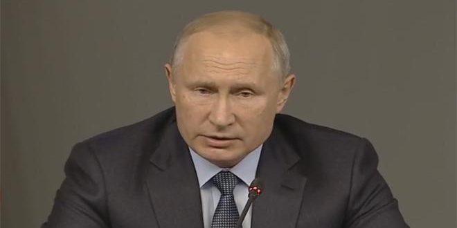 وأوضح بوتين أنه تم تحرير معظم الأراضي السورية من الإرهاب ودخلت البلاد في مرحلة إعادة الإعمار، مؤكداً أن السوريين وحدهم هم من يقررون مستقبل بلدهم.