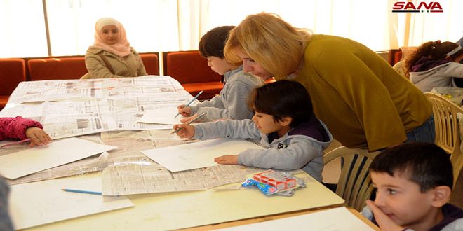 على هامش معرض كتاب الطفل الأول الذي يقام حاليا في مكتبة الأسد الوطنية تقام ورشات عمل في فنون مختلفة لتعليم الأطفال وتنمية مواهبهم.