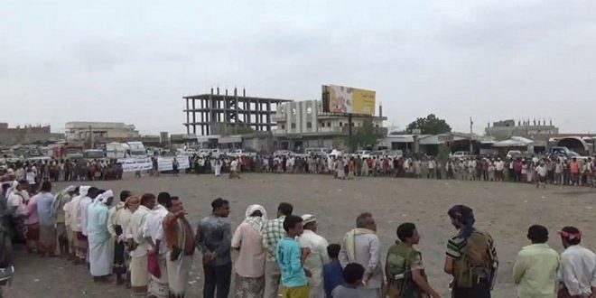 نظم أبناء مديرية المنيرة في محافظة الحديدة اليمنية وقفة احتجاجية اليوم تنديدا باستمرار جرائم العدوان السعودي على اليمن.