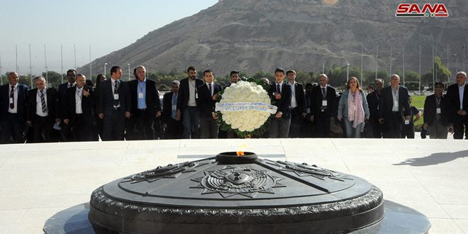 زارت الوفود المشاركة في اجتماعات اللجنة التنفيذية لمجلس السلم العالمي اليوم ضريح الجندي المجهول في جبل قاسيون ووضعوا إكليلاً من الورد عليه وسجلوا كلمة في سجل الزوار.