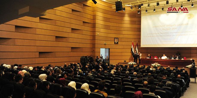 أكد المشاركون في المؤتمر الدولي التضامني مع سورية الذي أقامه مجلس السلم العالمي واتحاد الشباب الديمقراطي العالمي والاتحاد الوطني لطلبة سورية على مدرج جامعة دمشق اليوم أن الشعب السوري أعطى دروسا بالنضال في مواجهته الحرب الإرهابية التي استهدفته على مدى اكثر من سبع سنوات معتبرين أن الهجمة الشرسة التي تعرضت لها سورية كانت تهدف الى تفتيتها وانهاء دورها القومي.