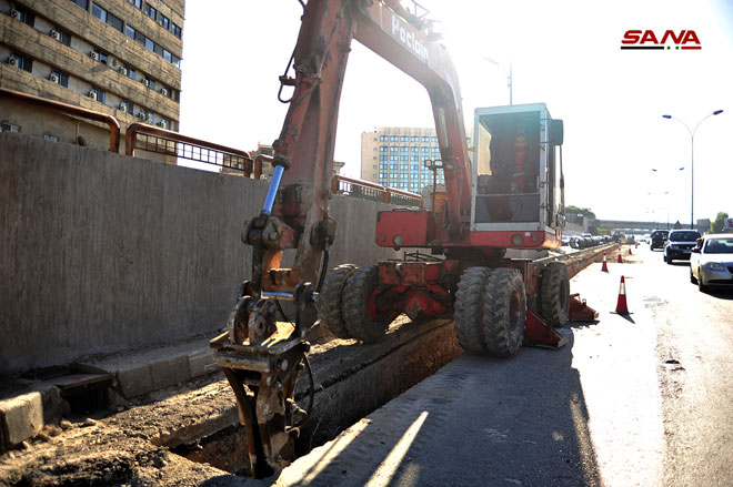 بالصور..ورشات الصيانة تواصل عملها بتنفيذ خط مطري إسعافي في أنفاق دمشق