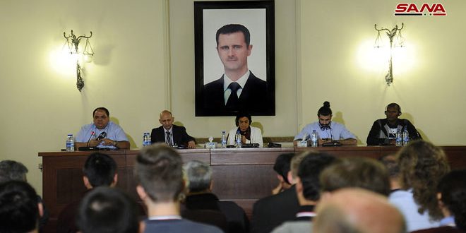 من جانبه رئيس مكتب العلاقات الخارجية في الاتحاد الوطني لطلبة سورية الدكتور أرشيد صياصنة أعرب عن تقديره وشكره لتضامن المشاركين مع سورية مشيرا إلى أن الجميع سيكون مدعوا للاحتفال قريبا بتحقيق النصر الكامل على الإرهاب والإمبريالية.