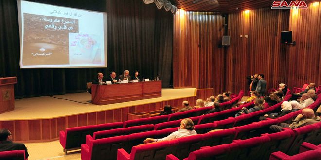 الندوة التي أقيمت بمكتبة الأسد الوطنية مساء اليوم تماهى فيها الشاعر بديع صقور مع نصوص وعبارات للأديبة الراحلة مقتبسا من قصصها وروايتها وأقوالها المأثورة.